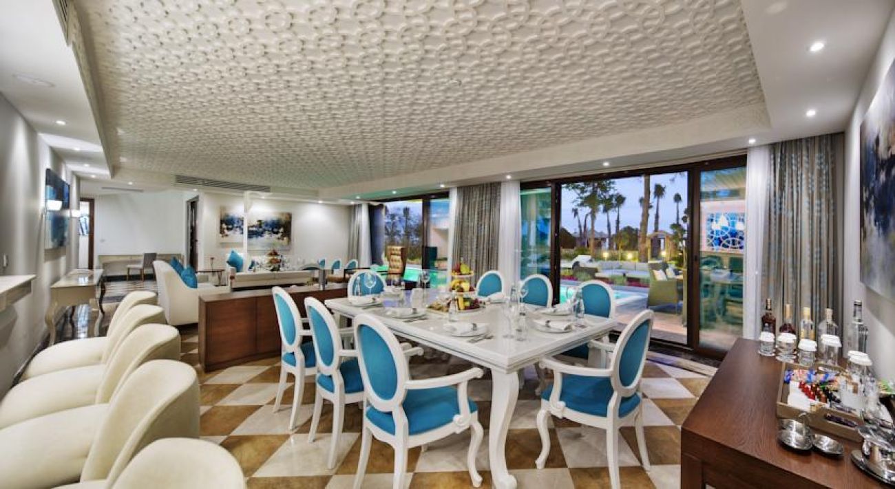 - 2 Grand deluxe beаch front suites (частен басейн, изглед към морето и басейна, хол, трапезария, 2 спални с врати, 2 бани, 2 тераси, 3 телевизора, максимум 5+1 души, 129 м2)