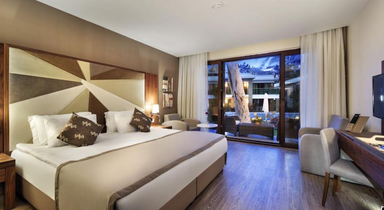 - 94 фамилни стаи (с изглед към басейна или градината, 2 спални, баня, 2 телевизора, максимум 4 души, 51 м2)