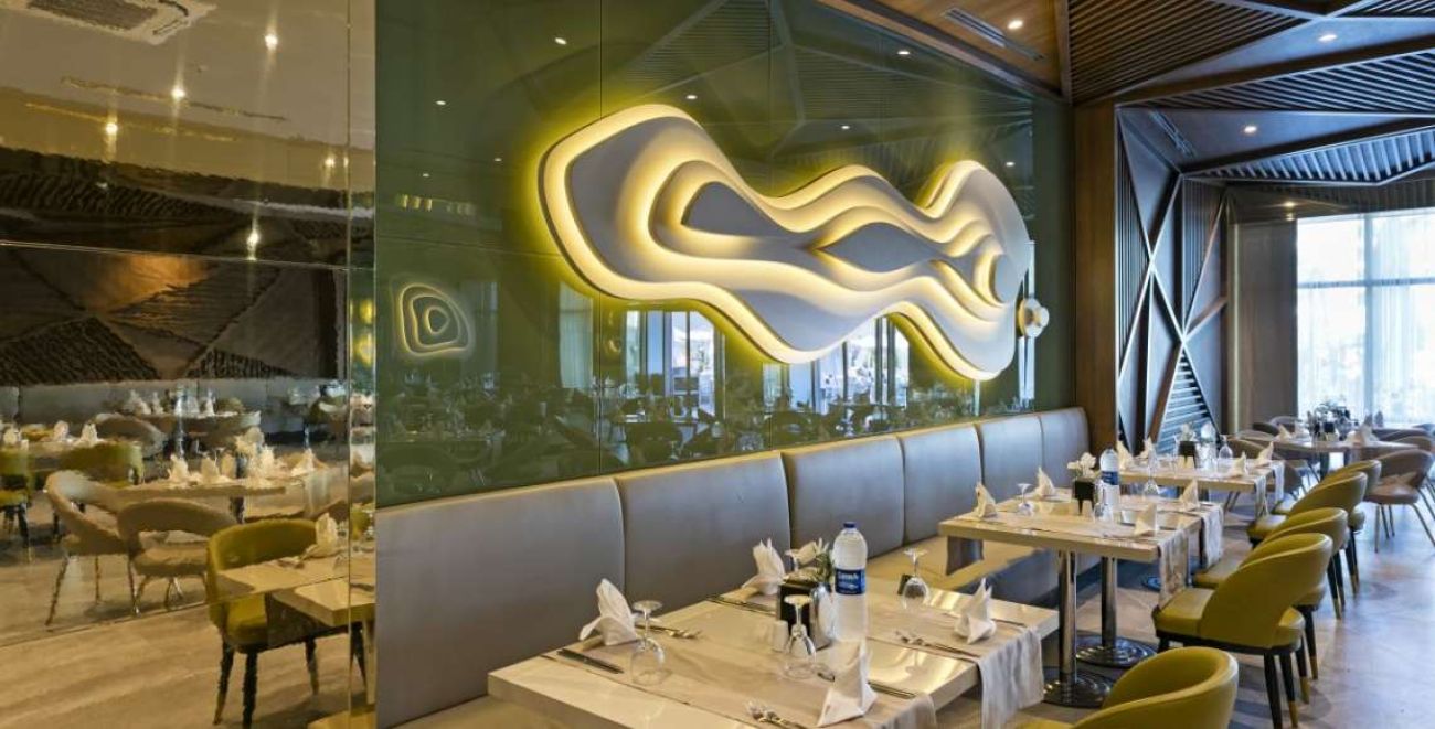 Хотелът разполага с oсновен ресторант, 3 a лa карт ресторанта (турски, италиански, рибен - срещу заплащане), сладкарница, 5 бара, 2 открити и 1 закрит басейн, 5 водни пързалки, дискотека, 2 конферентни зали, паркинг.