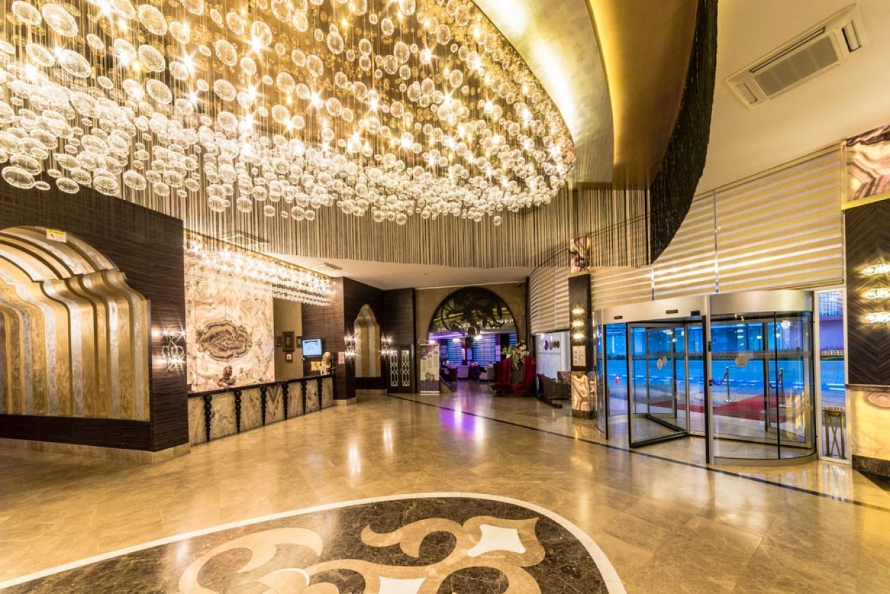 Обща площ 24 000 м2, последна реновация през 2011 год., хотелът разполага с основен ресторант, 2 а-ла-карт ресторанта, 6 барa, 2 открити басейна, аквапарк с 3 водни пързалки, закрит басейн, детски басейн, детска площадка, мини-клуб за децата, турска баня, сауна, фитнес зала, дартс, аеробика, бочия, тенис на маса, анимационна програма (3 пъти седмично), WIFI интернет.