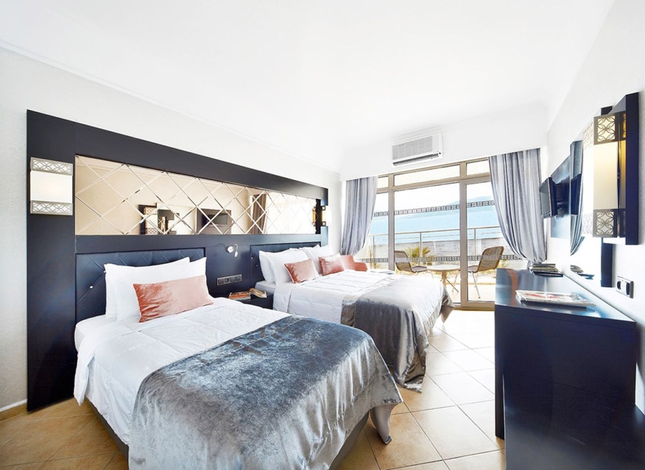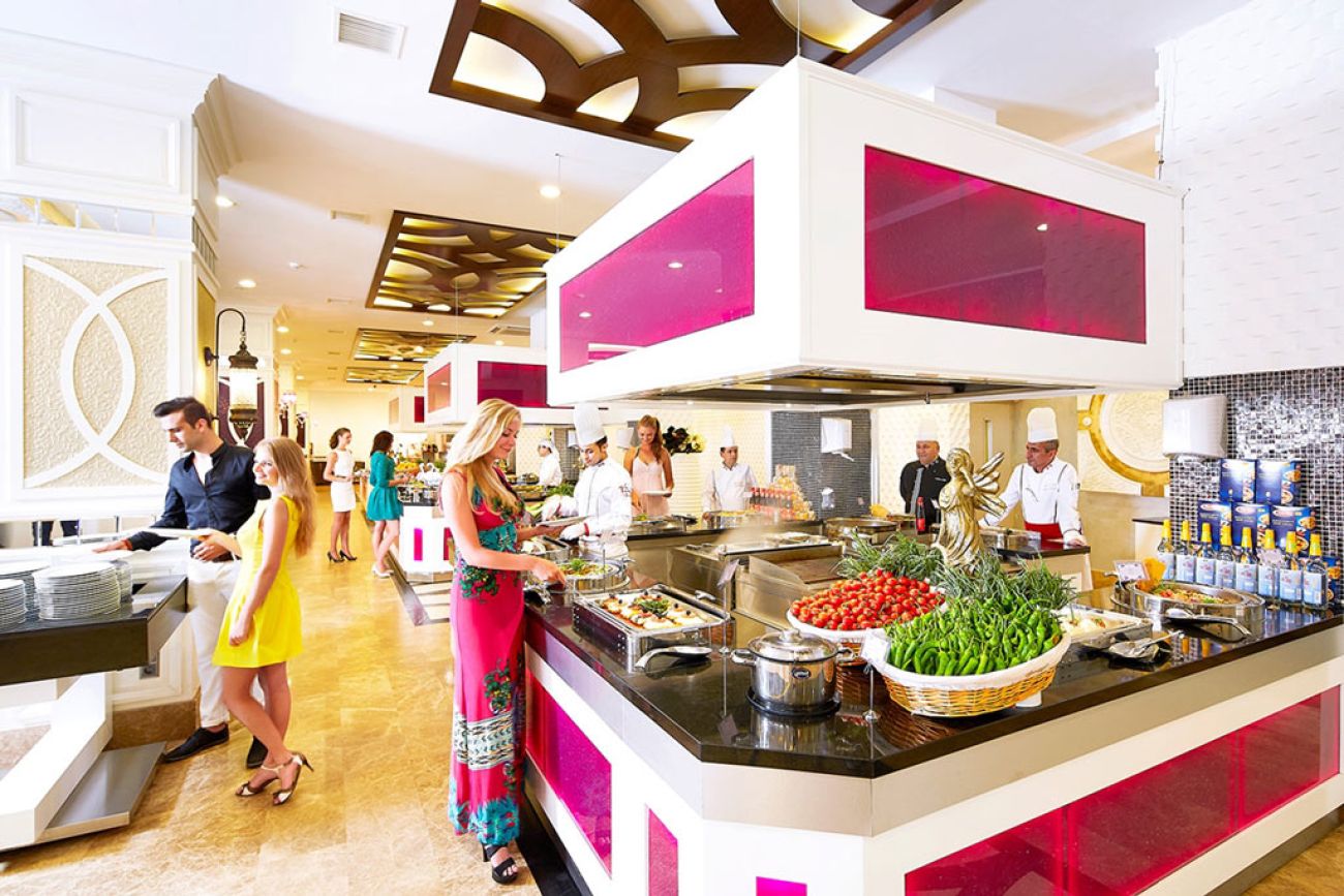 Ultra All Inclusive изхранване – закуска, обяд, вечеря, сервирани на бюфет в ресторанта на хотела, наливни местни безалкохолни и алкохолни напитки до 23.00ч., следобедни снаксове, следобедно кафе и чай със сладки, късна супа, WIFI интернет в лобито на хотела, турска баня, сауна, фитнес, аеробика, волейбол, баскетбол, тенис корт с бетонно покритие през деня, тенис на маса, вход в дискотеката, анимационна програма (3 пъти седмично), чадъри, шезлонги, матраци безплатно на плажа пред хотела.