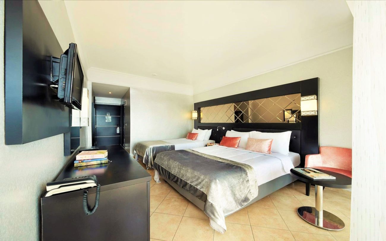 Хотелът се състои от четири блока A, B, С и D със 573 стандартни двойни стаи (20-30 м2) и 51 апартамента, които разполагат с баня с душ и сешоар, индивидуален климатик, телевизор, телефон, сейф, мини-бар (безплатно зареден с вода), под – теракот, балкон. Почистване на стаите – всеки ден, смяна на спално бельо и кърпи – 3 пъти седмично.
