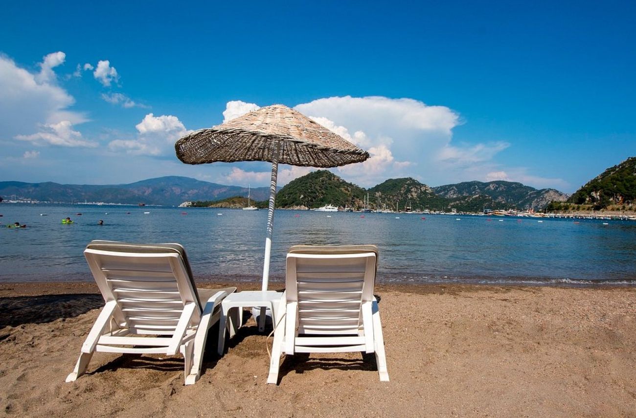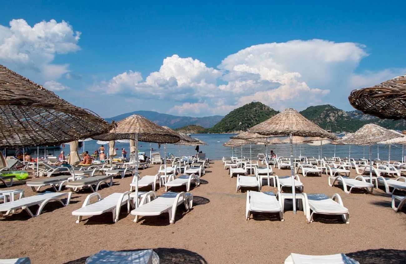 Собствен плаж. Чадъри, шезлонги, матраци на плажа и на басейна – безплатно.
