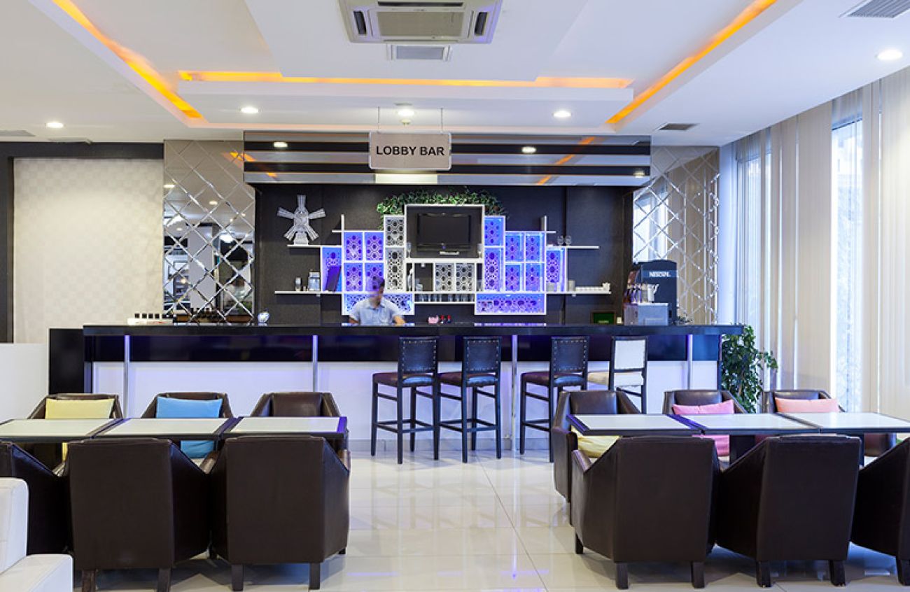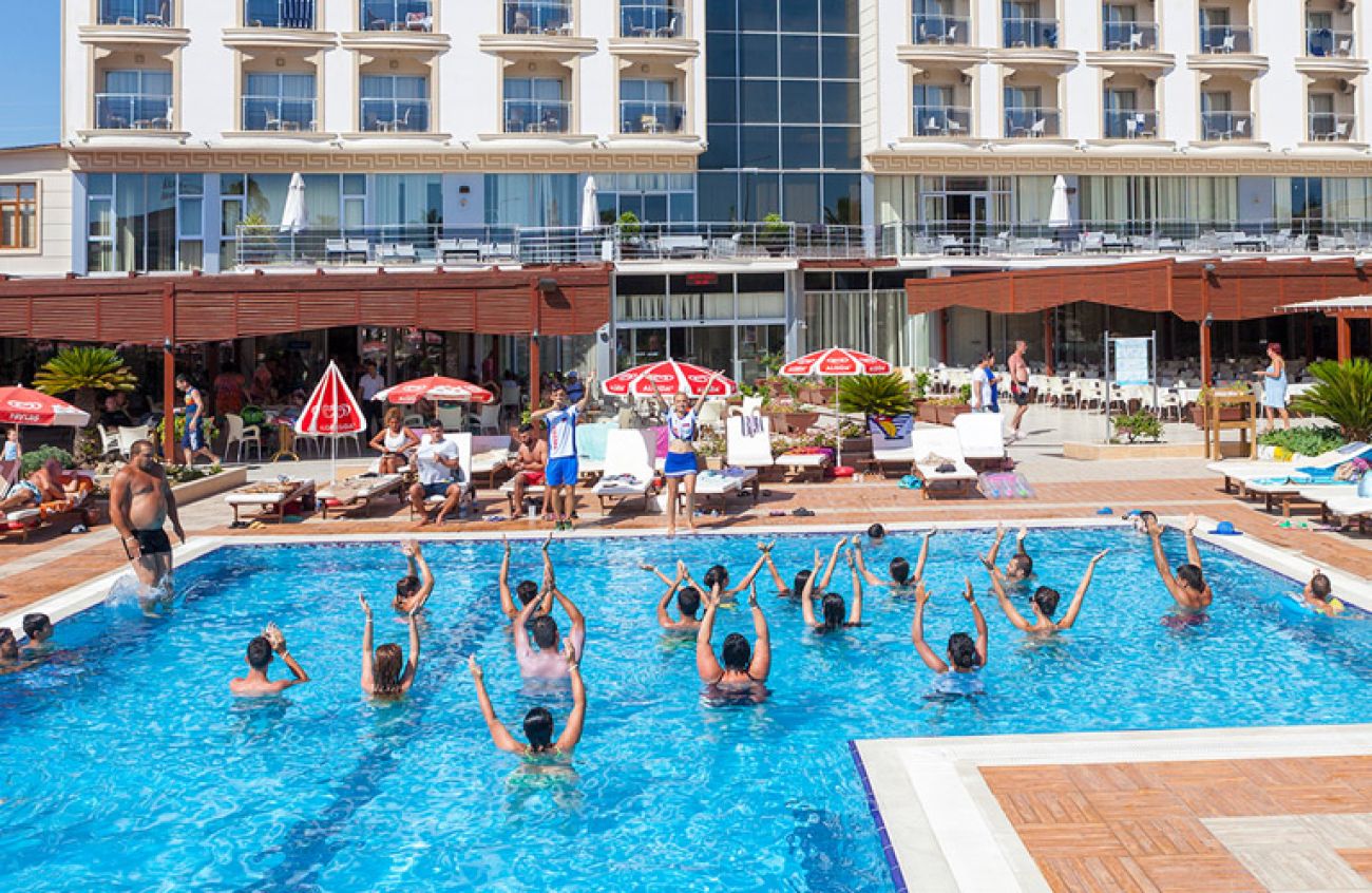 Основен ресторант, 4 бара, сладкарница, открит басейн, закрит басейн,детски басейн, водни пързалки, тенис на маса, билярд, СПА центъра, конферентна зала,анимация.