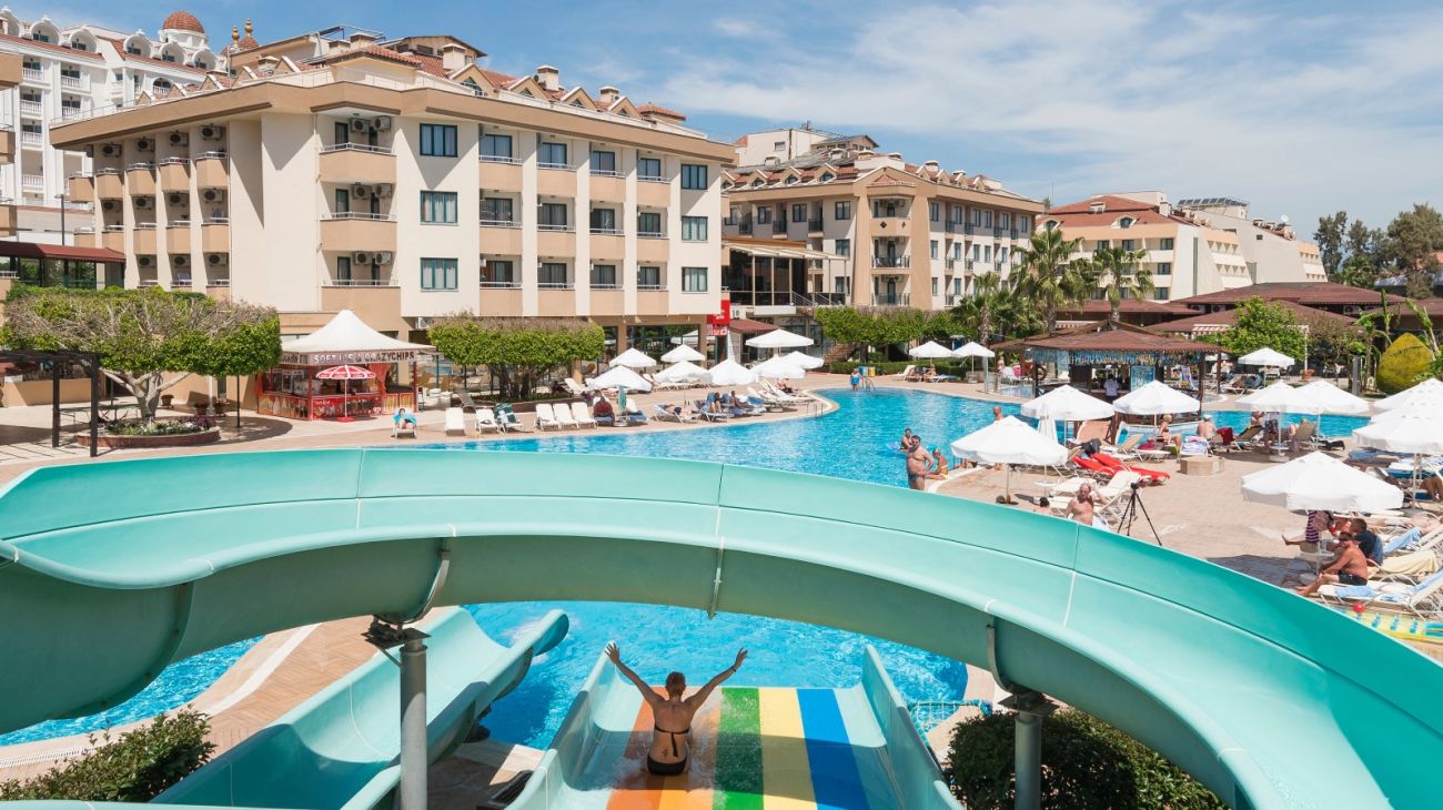 2 открити басейна, 2 детски басейна, басейн за релакс, водни пързалки, 2 основни ресторанта, открит ресторант, а-ла-карт ресторант, 5 бара, детски клуб, футболно игрище, анимация, плажен волейбол, баскетбол, тенис, билярд, водни спортове, дискотека, турска баня, сауна, масаж, търговски център, конферентна зала, собствен плаж и др.