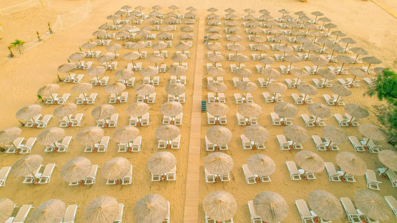 Шезлонги, чадъри, плажни кърпи са безплатни.
