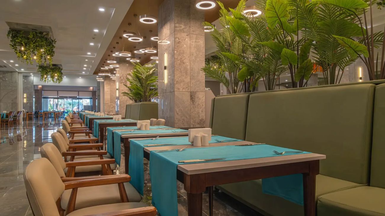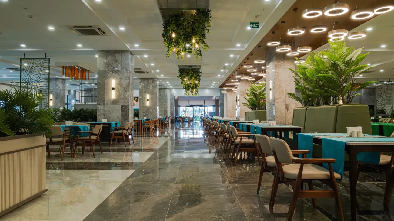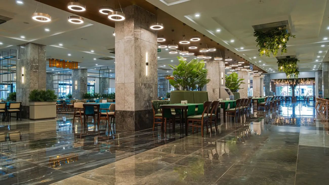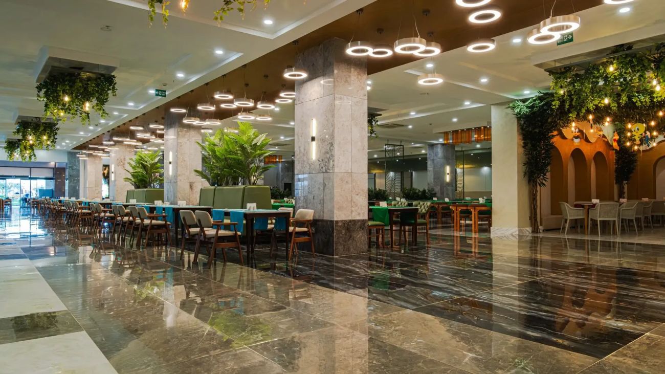 лоби бар, основен ресторант с вътрешен двор, три а ла карт ресторанта (в зависимост от наличността, изисква се резервация) различни барове, магазини, фризьорски салон, закрит плувен басейн ( само през зимния сезон) и модерно оборудвания уелнес център. В цялата територия на хотела е осигурена безжична интернет връзка (WiFi). В градината на хотела - сладководни басейни, гигантски аквапарк с много различни пързалки за малки и големи.