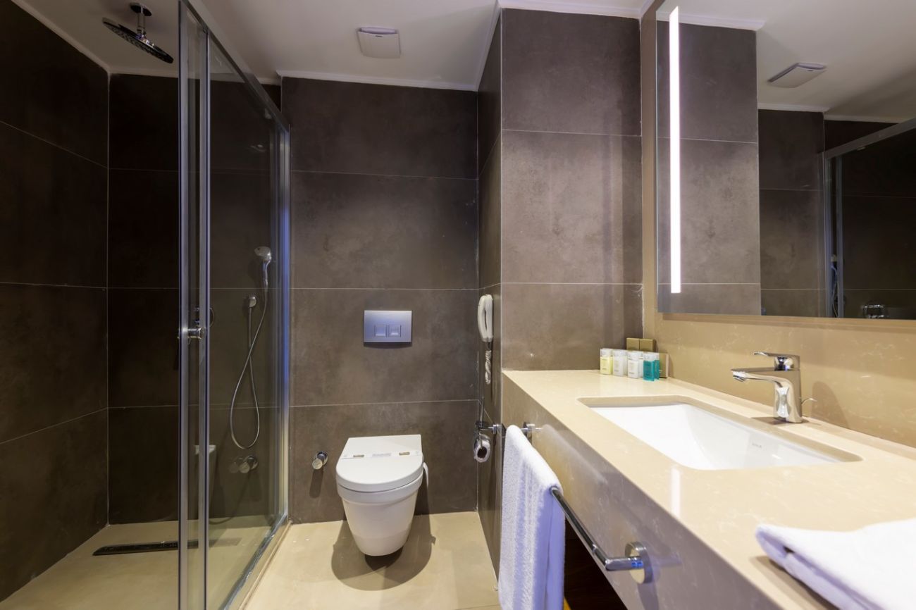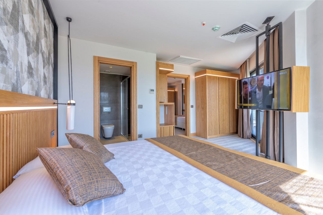 Едно от предимствата на хотела са неговите широки луксозни стаи с площ от 32 m², всяка от които е оборудвана с двойно легло и разтегателен диван, климатик, 43-инчов LED телевизор със сателитен приемник, телефон с директно избиране, баня с душ или вана, халат и чехли за баня, сешоар, минибар, електронен сейф, сет за приготвяне на чай и кафе, балкон, безжичен интернет.Ежедневно презареждане на минибара с вода, сокове, газирани безалкохолни напитки и бира.