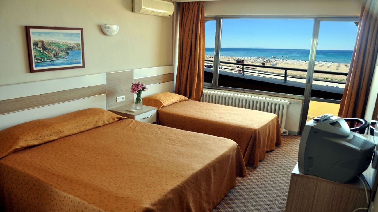 Разположен на 160 км. от летище Измир, в квартал Сарамсаклъ, на 7 км от центъра на Айвалък, на една от най-хубавите плажни ивици в Турция, на 50 м. от собствения си плаж.Последна реновация на хотела е направена през 2014г.