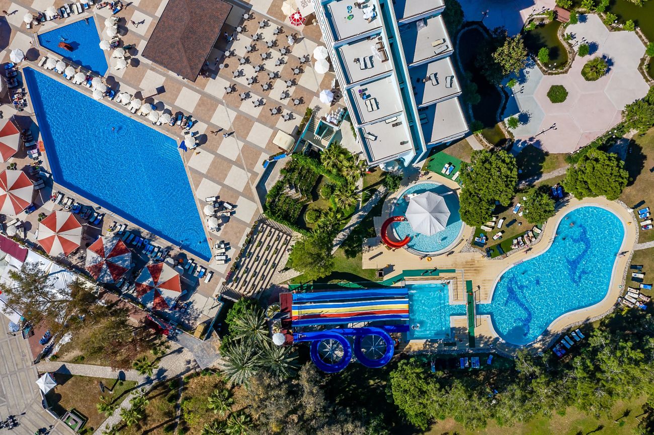 Хотелът предлага основен ресторант, 3 а la Сarte ресторанта (рибен - платено, турски, италиански, с предварително записване, посещение на всеки от ресторантите 1 път за времето на престоя - безплатно), 5 бара, диетично меню, 2 открити басейна, закрит басейн, 4 водни пързалки, лекарски кабинет, пералня, химчиско чистене, магазини, автомобили под наем, паркинг, ТV-зала, жива музика, 4 зали за конференции (на 200, 200, 400, 600 души.