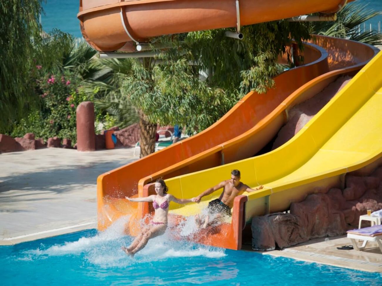 Хотелът предлага основен ресторант, 3 бара, 2 открити басейна, 3 водни пързалки, лекарски кабинет, фризьорски салон, магазини, пералня, конферентна зала ( 150 чов. ).