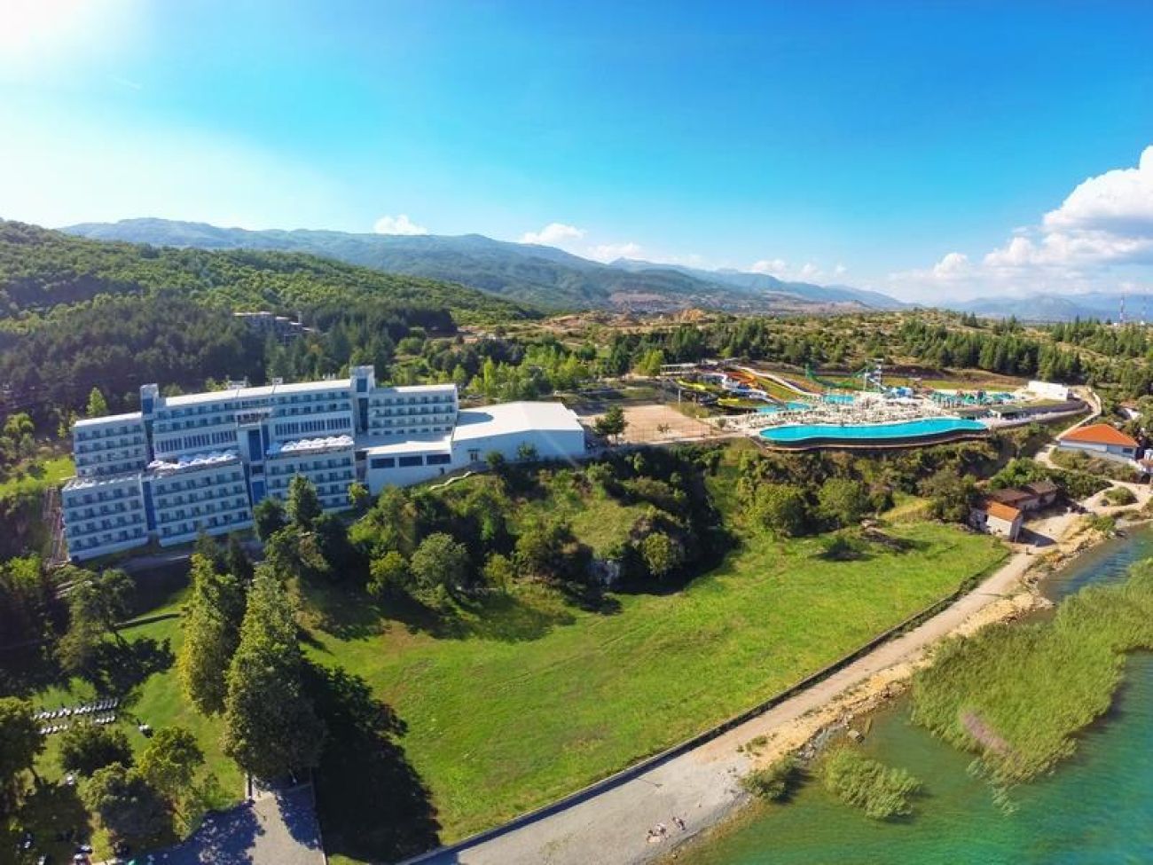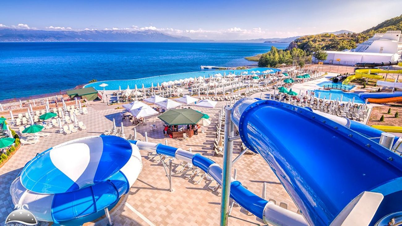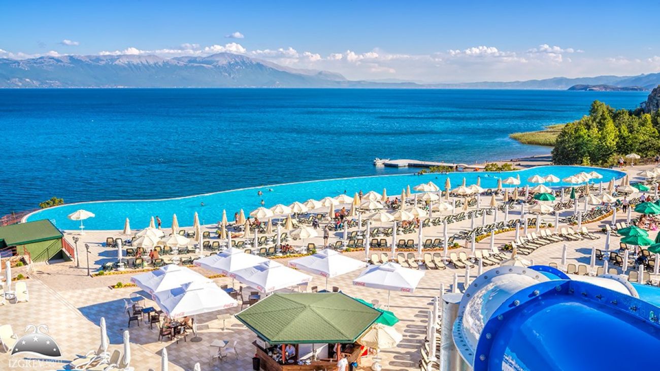Нов петзвезден хотел на брега на Охридското езеро със собствен плаж, собствен АКВАПАРК и СПА център, разположен на 5 км. от Струга и 20 км. от Охрид.