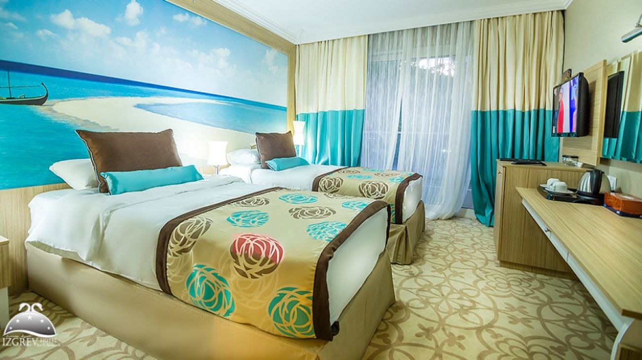- 112 стандартни стаи - 19-22 м2, максимално настаняване 2-ма възр.+ 1 дете; 3 възр. + 1 дете