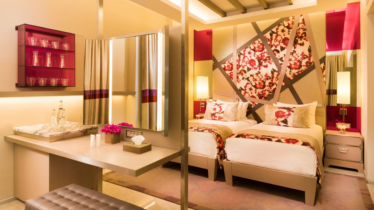 2двустайни deluxe family room (2 спални с врата, 2 ТV, 2 вани, тераса с шезлонги, изглед море, макс.4 човека, 88 м2);