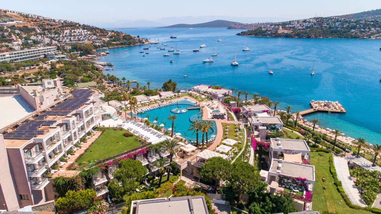 Хотелът е разположен на брега на морето, на 500 м от района на Гюндоан, на 30 км от град Бодрум и на 40 км от летище Милас. Разполага с обща площ от 30 000 m² и последно реновиран през 2024 г. - стаи, басеини, общи части, лоби, сладкарница и СПА цетър.