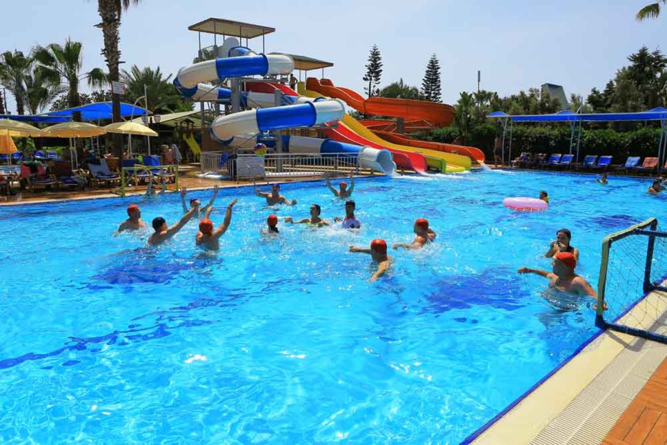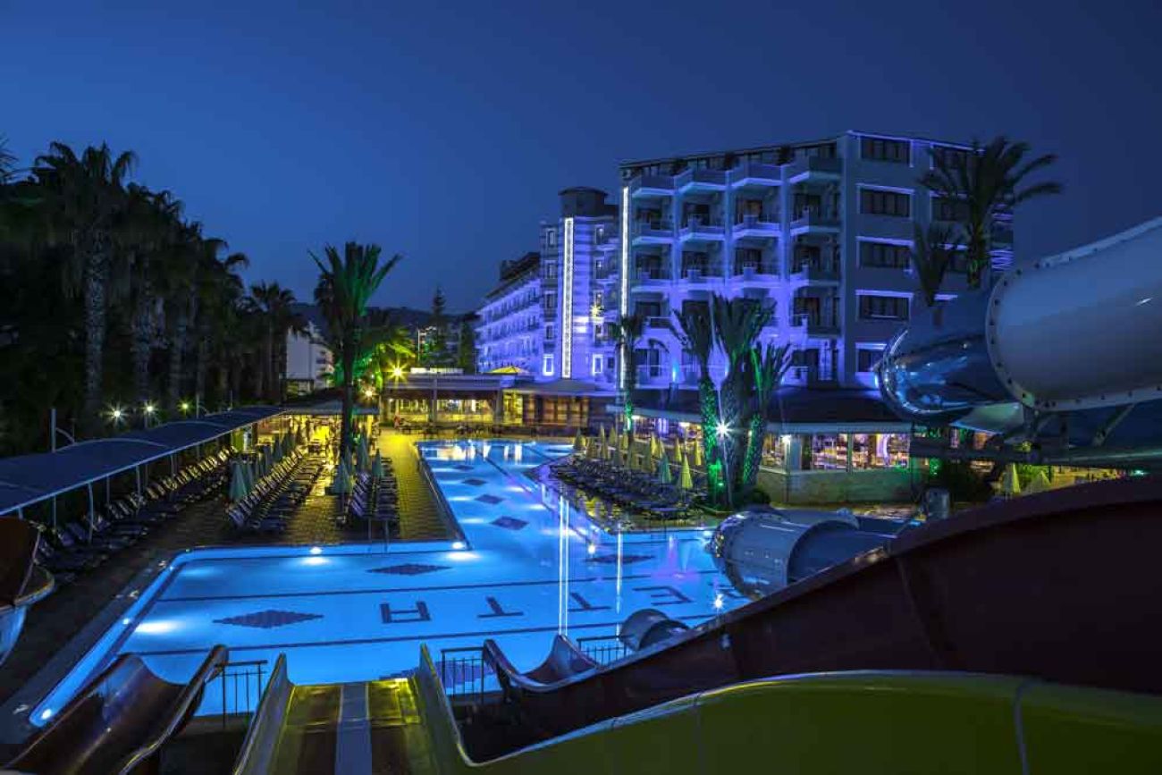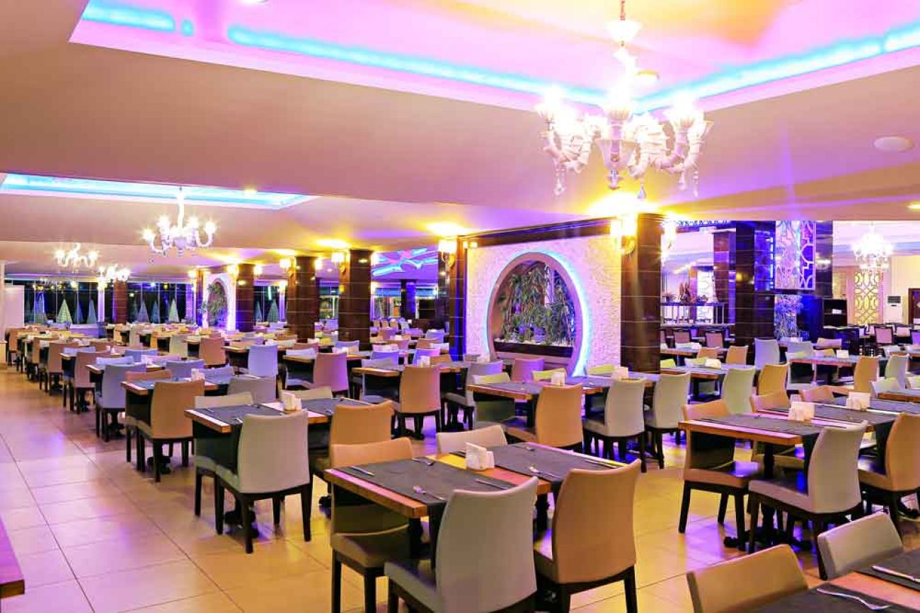 Хотелът разполага с основен ресторант, 4 бара, гьозлеме пекарна на плажа, открит басейн, водни пързалки, SPA център със закрит басейн, турска баня и сауна, фитнес зала, анимационна програма, дартс, тенис на маса, аеробика, водна гимнастика, плажен волейбол, водна топка, амфитеатър за вечерни представления, дискотека на открито, търговски център, безжичен интернет срещу допълнително заплащане.