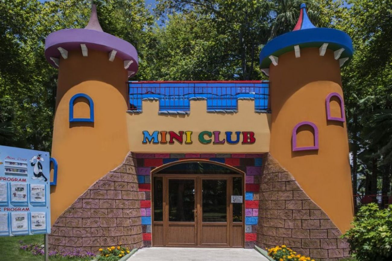 Детски бюфет, детско меню, 2 детски басейна, 4 водни пързалки, детска площадка, мини клуб (4–12 год.), юниор-клуб (13–16 год.), луна-парк (безплатно), детска количка (срещу депозит), детегледачка (платено).