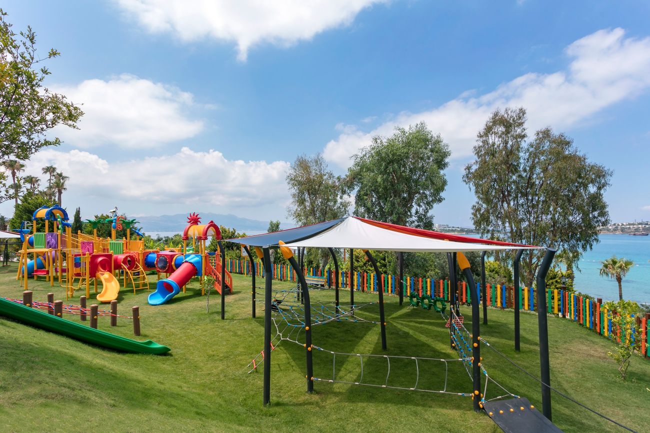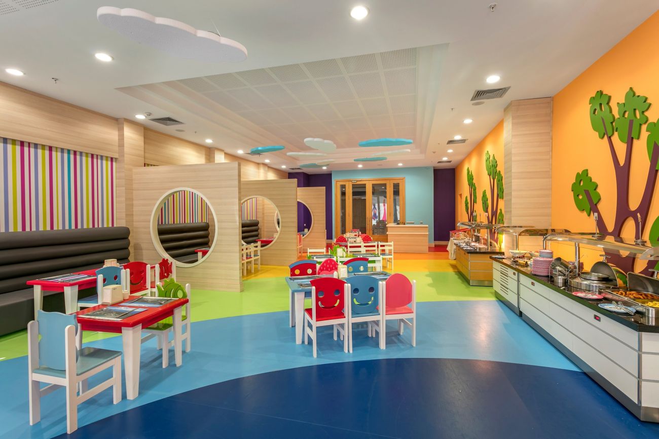 Детско меню, детски басейн, аквапарк с 5 водни пързалки, детска площадка, бейби клуб (1- 3 г.), мини клуб (4–12 год.), джуниър клуб (13-16 год.), детски ресторант.