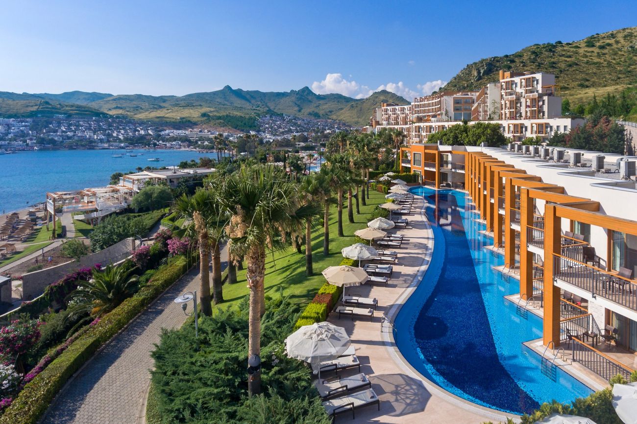 Хотелът се намира на 60 км от летище Милас, на 25 км от центъра на Бодрум, в района на Тургутрейс, на брега на морето с панорамна гледка към Егейско море. Разполага с обща площ от 50 000 m².
