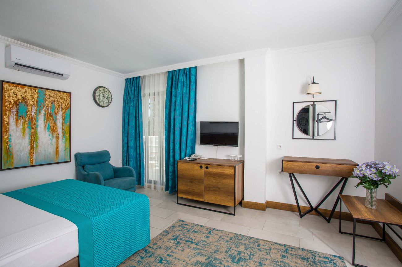 Всяка стая е оборудвана с: климатик, телевизор, телефон, сейф, минибар (безплатно при настаняване - вода), баня с душ/вана, сешоар, балкон / френски балкон, WI-FI.