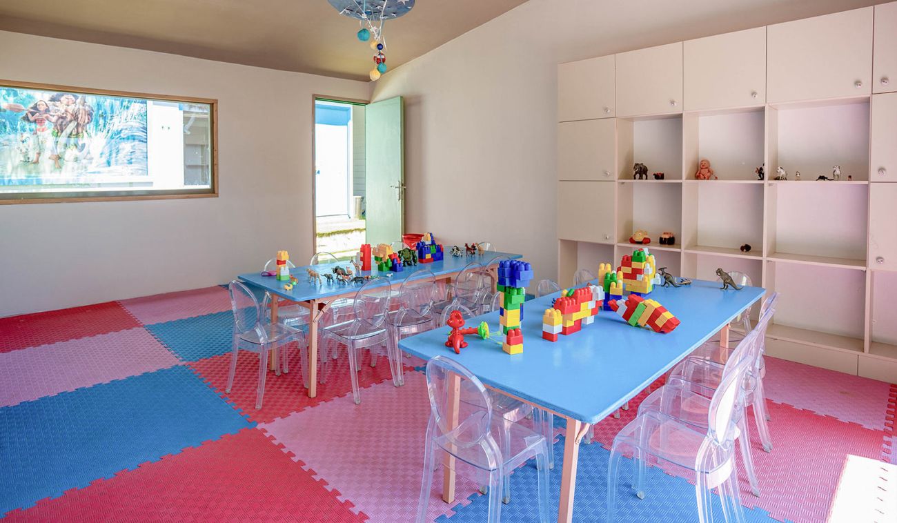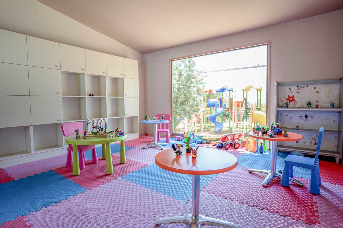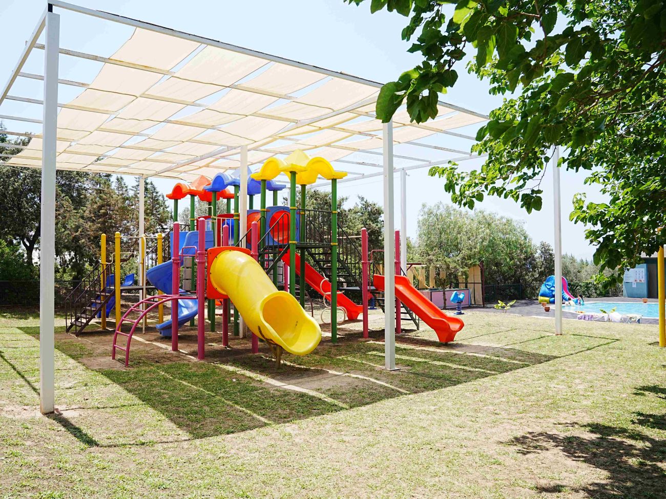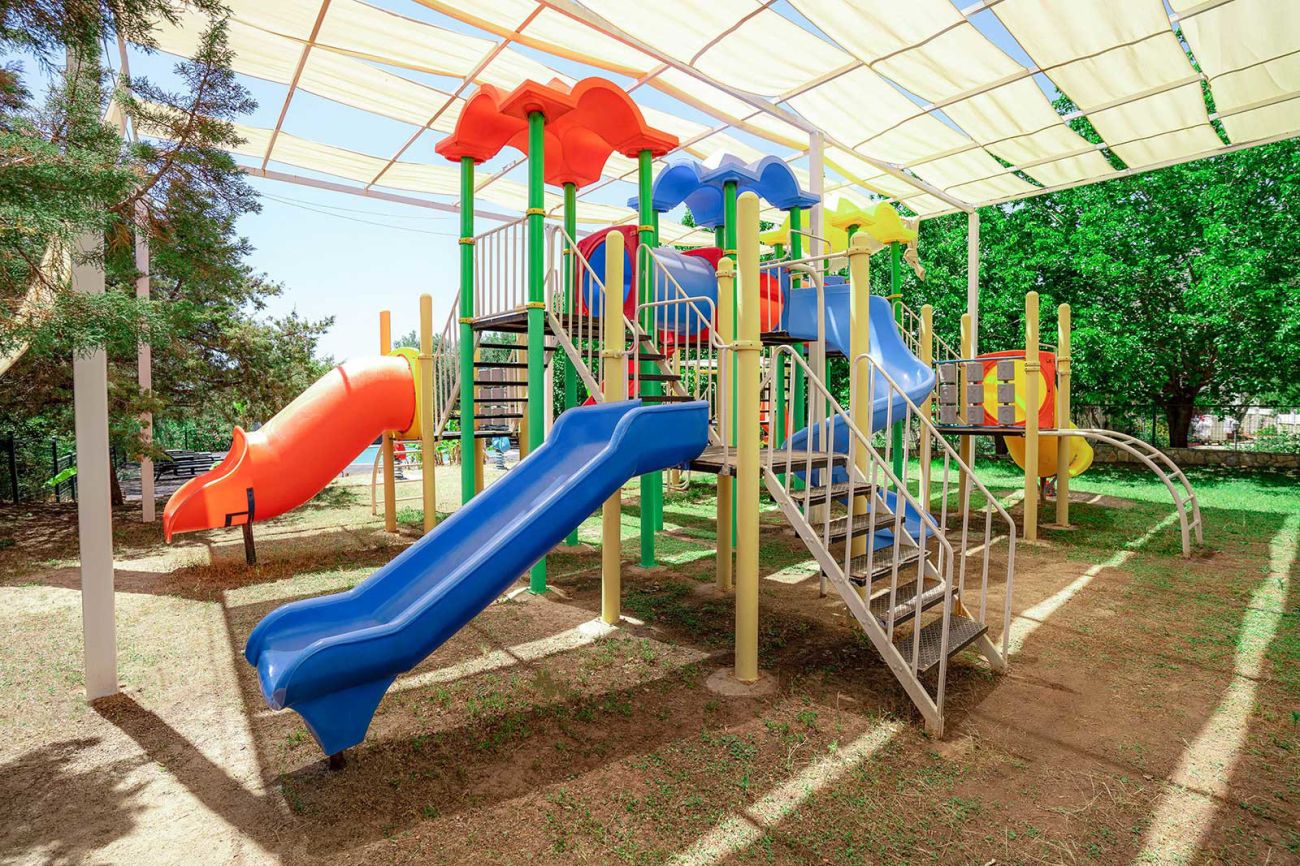 Детска площадка, детска анимация, мини клуб (4-12г.), детски басейн, водни пързалки, лека анимация.