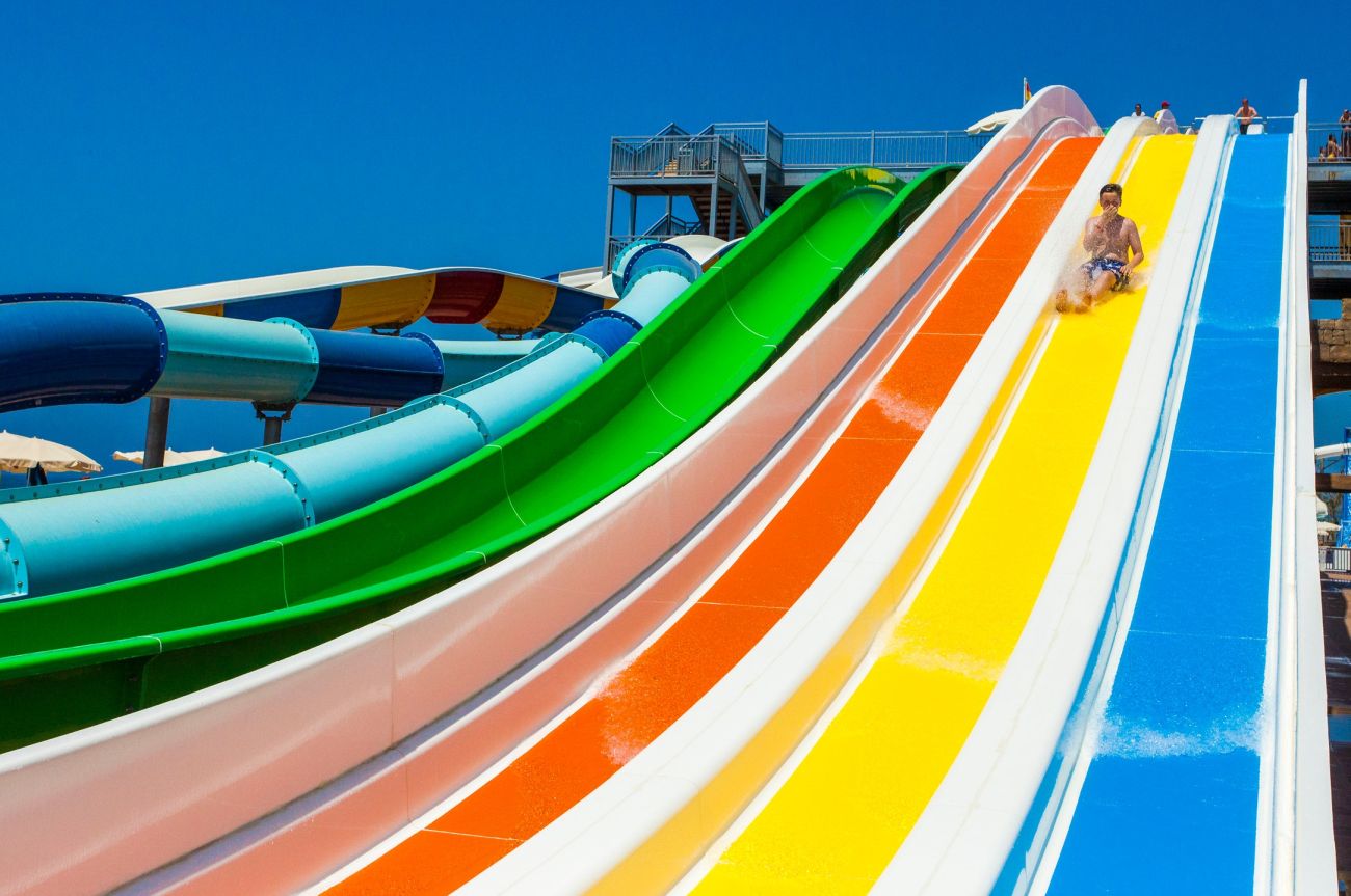 Детски басейн, водни пързалки, мини клуб ( 4 – 12 г. ), анимация .