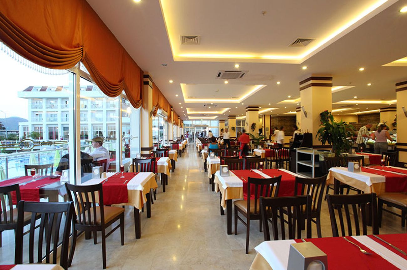 На територията на Novia White Lilyum Hotel се предлагат основен ресторант, ресторант a - la - carte (турско-италианската кухня, с предварителна резервация, посещение веднъж - безплатно), 5 бара, открит басейн, закрит басейн (работи през зимата), 2 водни пързалки, лекар на повикване, SPA - център, фризьор, магазини, пералня, химическо чистене, конферентна зала (200 чов).