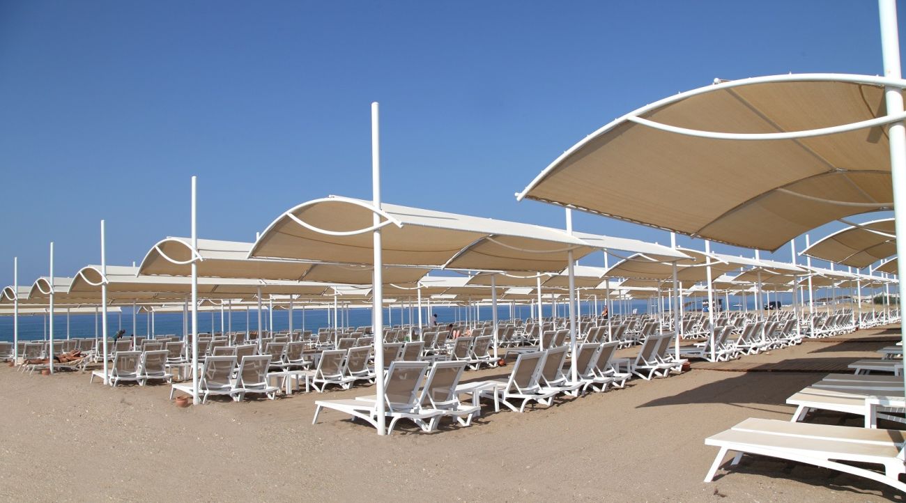 Плажът е на 250 м. от хотела - собствен, пясъчно-чакълест. Чадъри, шезлонги на плажа и при басейна - безплатни. Плажни кърпи - срещу депозит.