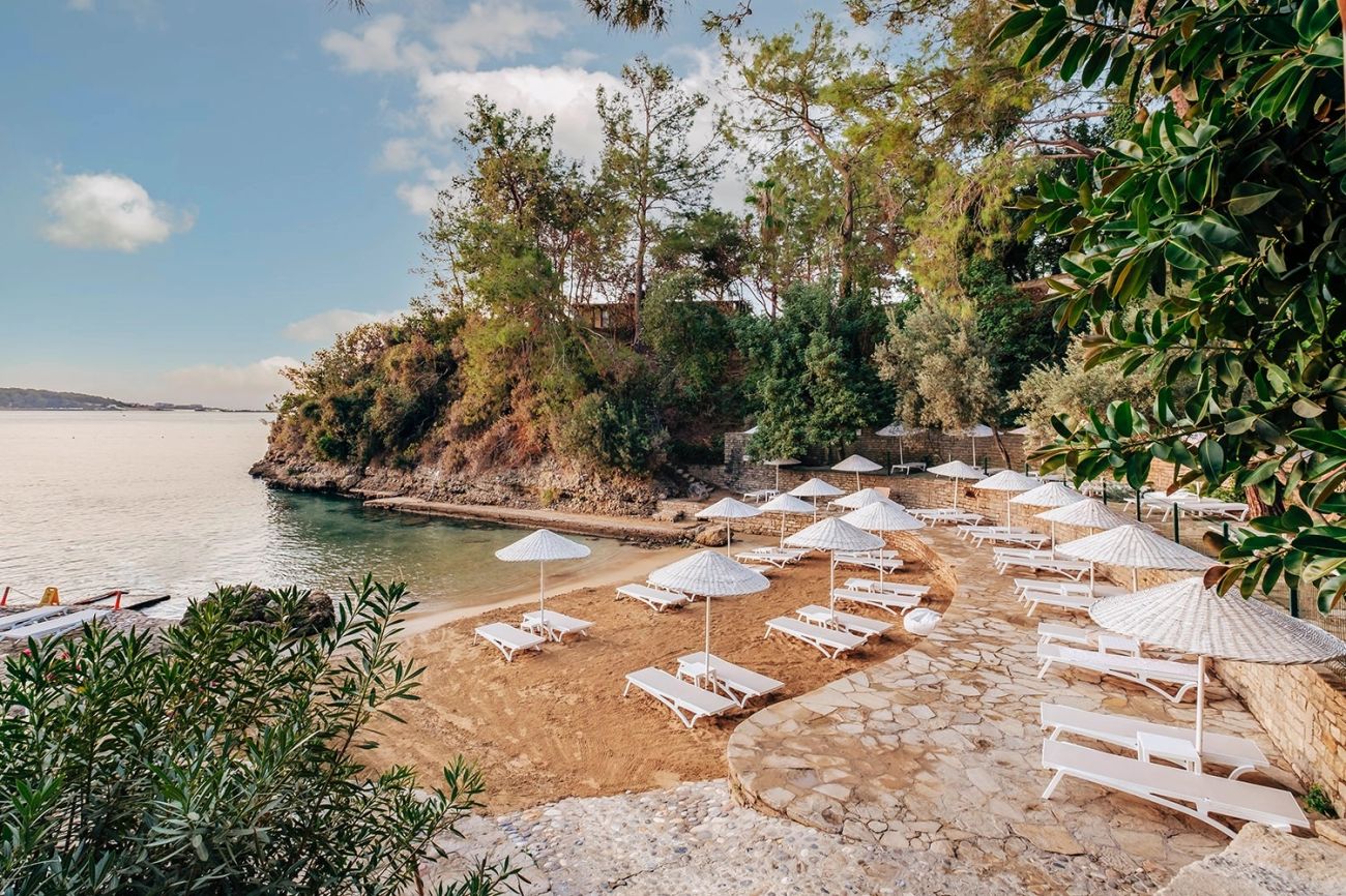 Хотелът разполага с 3 собствени, пясъчни плажа: BAY BEACH (35м, плаж със син флаг), LAGOON BEACH (142м плаж със син флаг) и SANDY BEACH (100м със син флаг). Предоставят се безплатно, чадъри, шезлонги и матраци на плажа и при басейна.