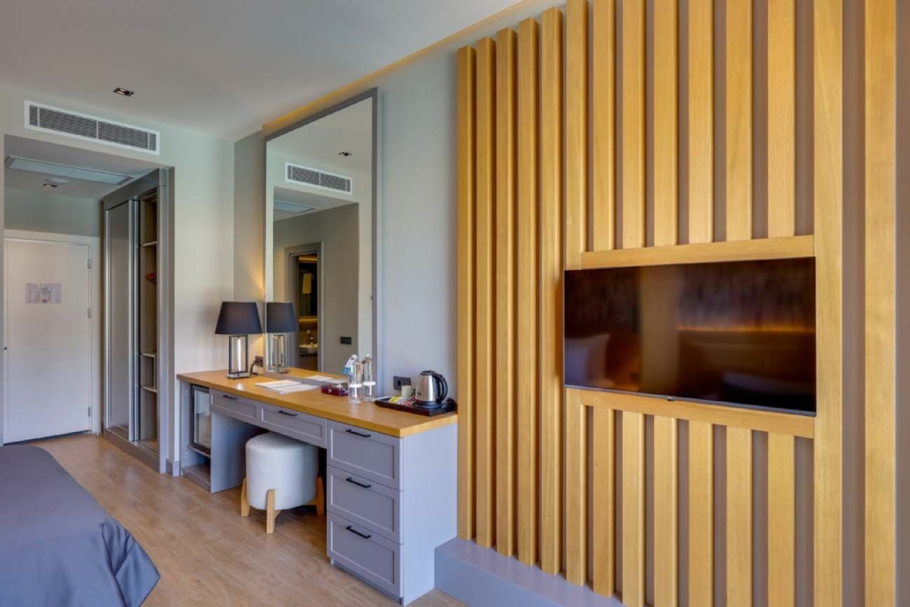 Хотелът разполага с 40 стаи, от които Superior room (35 m²) разположени на втори етаж, Premium Garden Rooms (35 m²) разположени на партерен етаж, Grande Rooms (40 m²) разположени на втори етаж. Всички стаи са оборудвани с климатик, телевизор, телефон, мини бар (само вода, в деня на настаняването), баня с вана/душ, сешоар, сет за чай/кафе, сейф, безплатен Wi-fi. Всеки ден стаите се зареждат с безплатна бутилирана вода. Смяна на кърпи и спално бельо - при поискване, почистване на стаите - ежедневно.