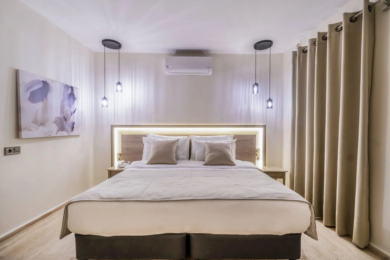 Standard Room (15м2), Deluxe Room (20м2), Двойна супериорна стая с 1 двойно или 2 отделни легла (Superior Double or Twin Room) (20м2), Джуниър суит (Junior Suite) (30м2), Junior Suite with Balcony and Sea View (Junior Suite with Balcony and Sea View) (32м2), Deluxe Room (33м2), Superior Room (33м2), Exclusive Suite, Balcony, Sea View (40м2), Суит с много голямо двойно легло (King Suite) (50м2).