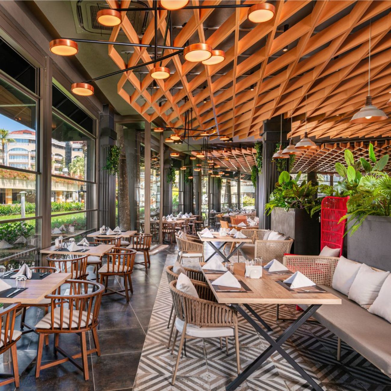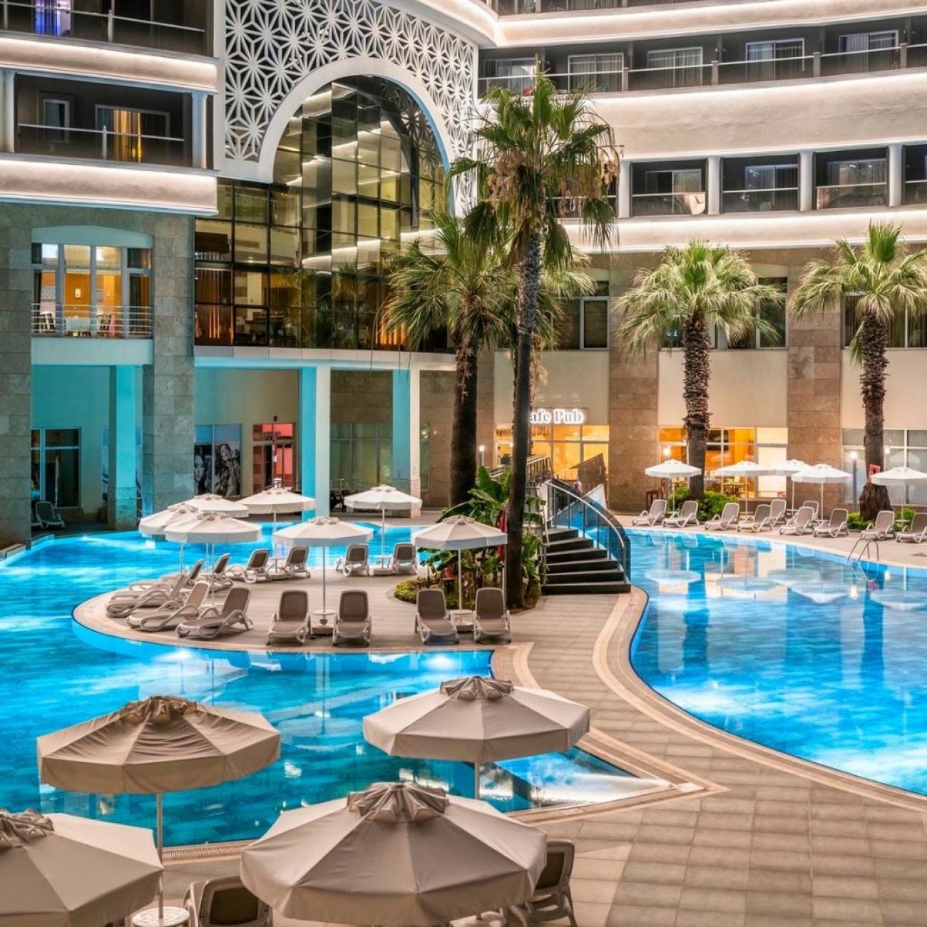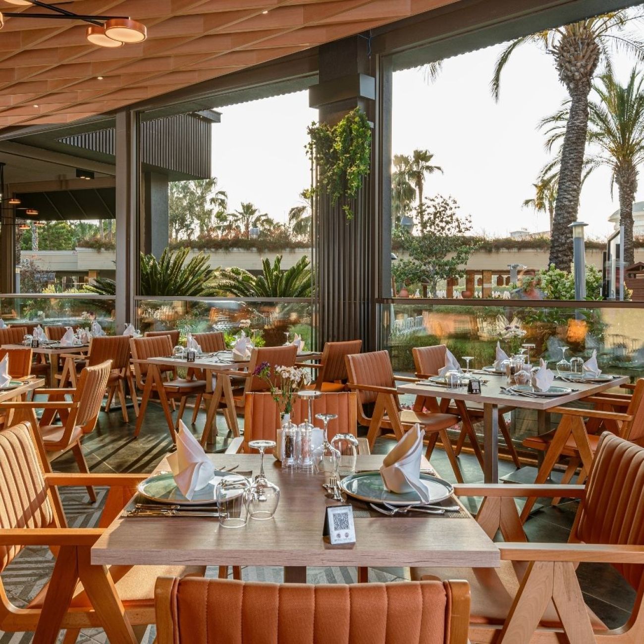 На територията на хотела има основнен ресторант, 3 A-la Сarte ресторанта(турски, китайски и средиземноморски -1 безплатно посещение седмично по предварително записване), предлага разнообразни турски и интернационални, блюда, диетично меню, вегетарианско меню, 5 бара, открит басейн, закрит басейн, водна пързалка , лекарски кабинет (1 час на ден ), ТВ-салон, библиотека, фризьорски салон, козметичен салон, пералня, магазин, обмен на валута, rent – a – car, паркинг, конферентна зала (за 250 души); За децата: детско меню, детски басейн, детска площадка, мини-клуб (4-12 г.), детегледачка – срещу доп. заплащане