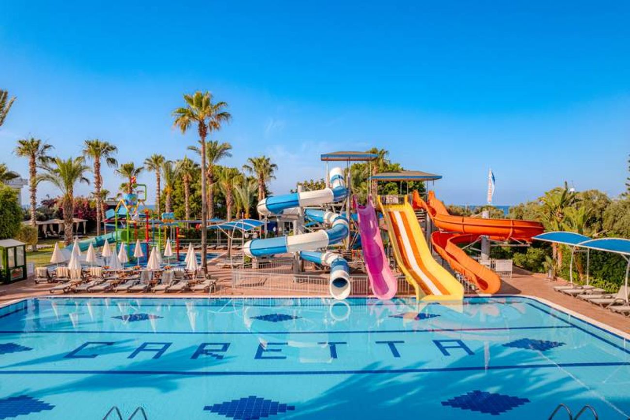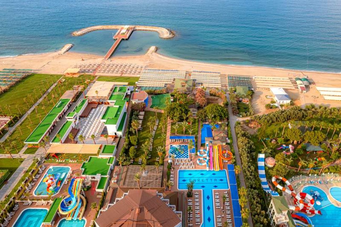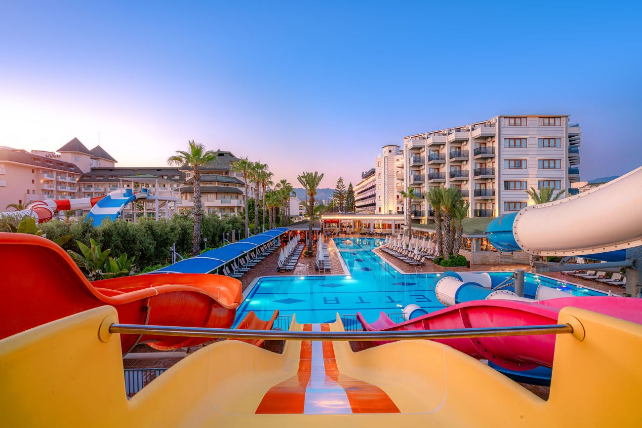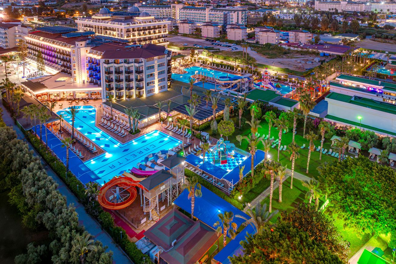 Хотелът разполага с основен ресторант, 4 бара, гьозлеме пекарна на плажа, открит басейн, водни пързалки, SPA център със закрит басейн, турска баня и сауна, фитнес зала, анимационна програма, дартс, тенис на маса, аеробика, водна гимнастика, плажен волейбол, водна топка, амфитеатър за вечерни представления, дискотека на открито, търговски център, безжичен интернет срещу допълнително заплащане.