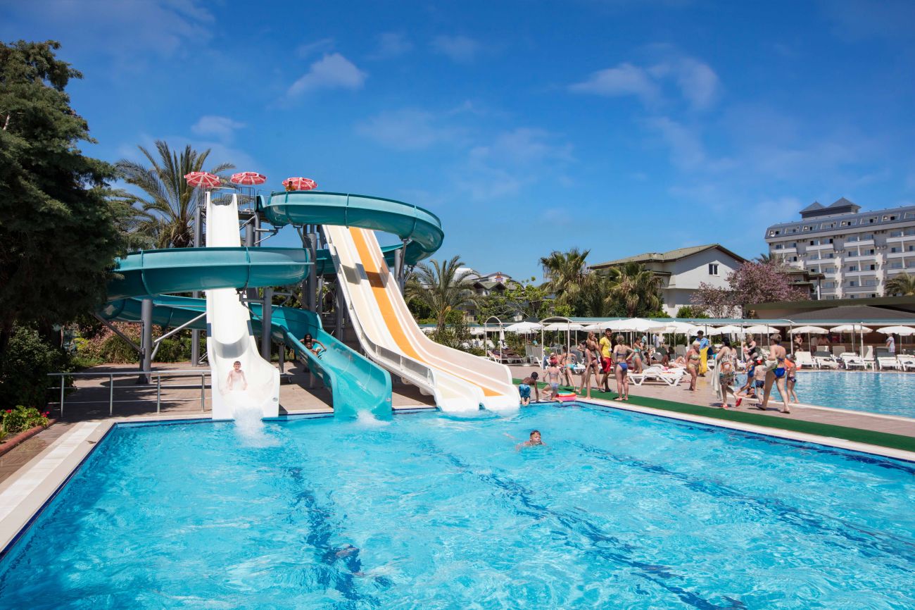 Хотелът предлага основен ресторант, a la carte ресторант (турски, по предварителна заявка, 1 безплатно посещение за целия престой, алкохолни напитки - платено) 4 бара, 2 открити басейна, закрит басейн, 2 водни пързалки, лекарски кабинет (2 часа на ден), фризьорски салон, TВ-зала, библиотека, пералня, магазини, обмен на валута, автомобили под наем, паркинг, 2 конферентни зали (за 80, 120 човека);
