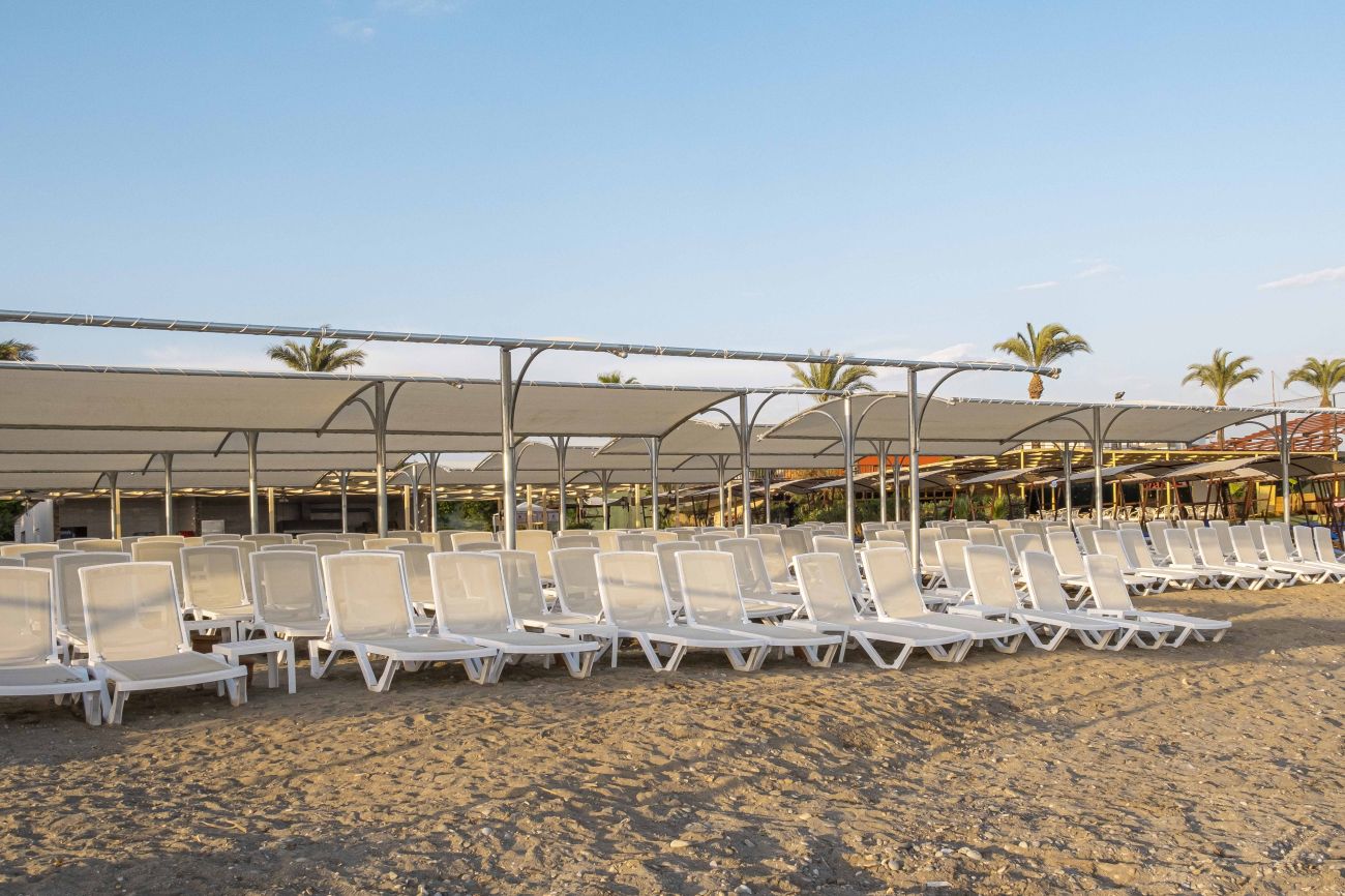 Собствен, пясъчен плаж. Бар на плажа. Чадъри, шезлонги, матраци – безплатно. Плажни кърпи: платено. На басейна: чадъри, шезлонги, матраци – безплатно.