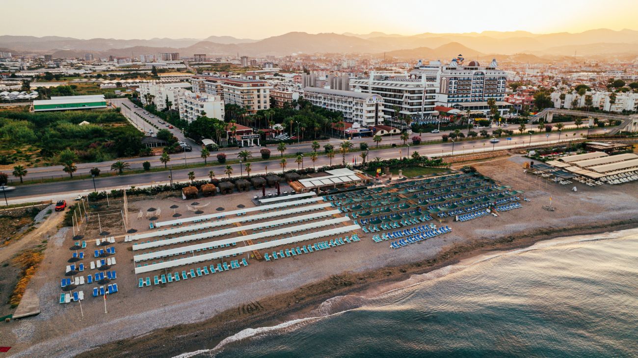 Хотелът е разположен на 110 километра от летището на град Анталия, на 3 километра от селището Конаклъ, на 30 метра през пътя от плажа, до който се стига през подземен тунел.