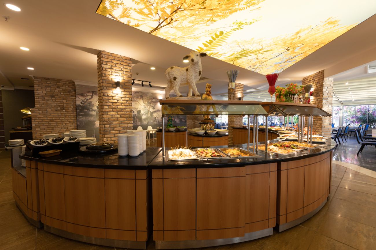 Хотелът разполага с основен ресторант, плувни басейни, детски басейн, детска площадка, мини клуб, анимация, турска баня, сауна, фитнес център, тенис на маса.