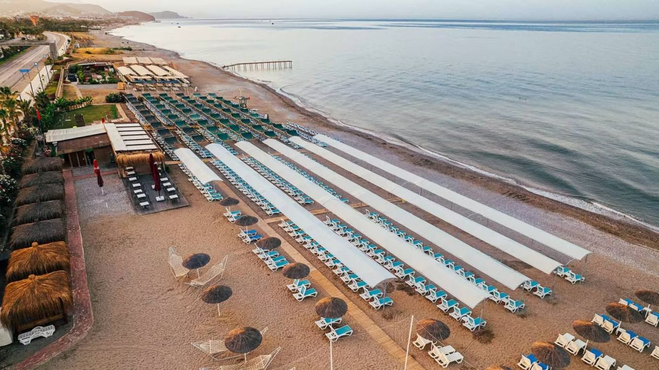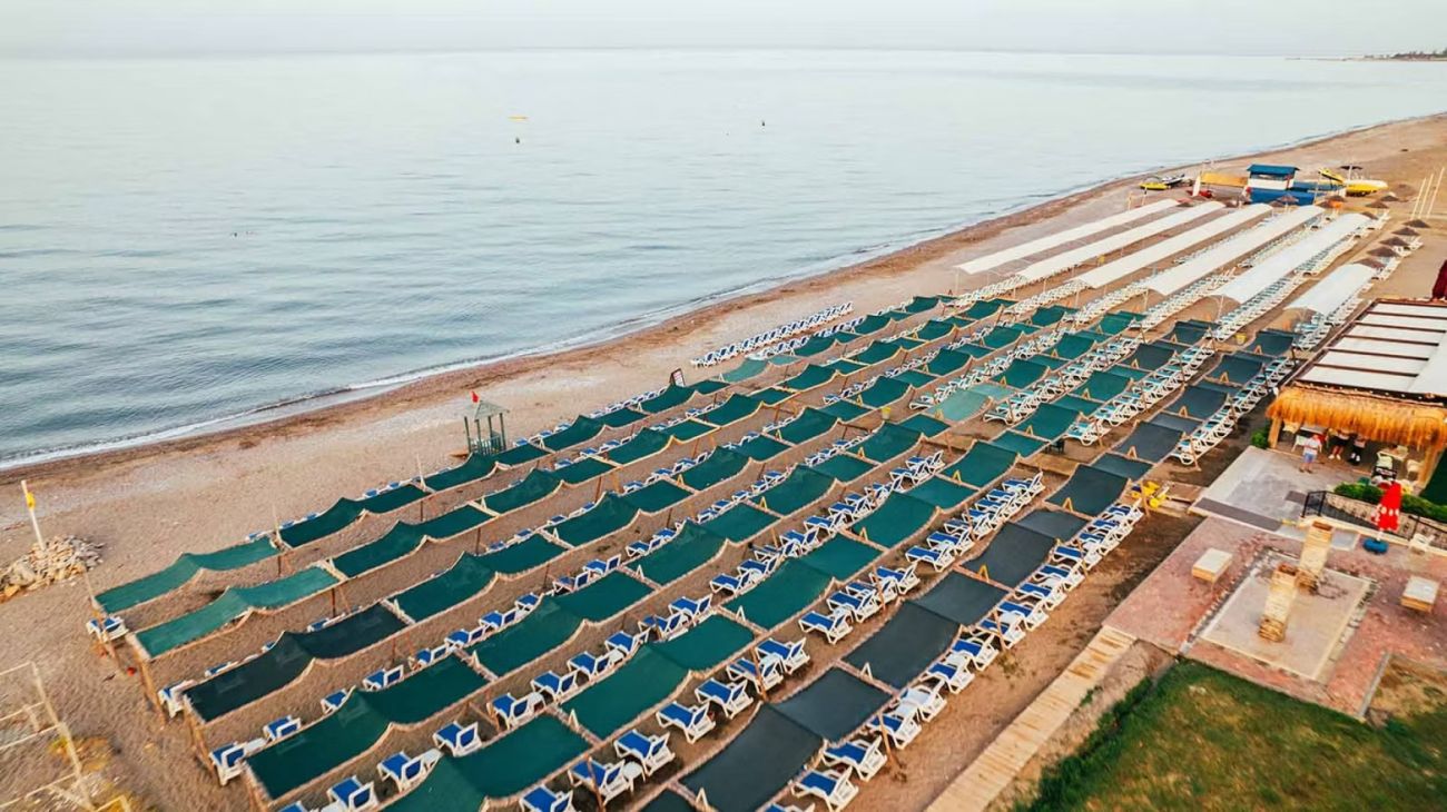 Шезлонги, чадъри — безплатно, плажни кърпи — с депозит, срещу заплащане.